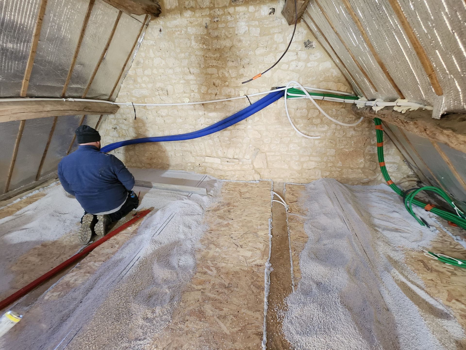 Ecorestor isole vos combles par soufflage, vos murs intérieurs et vos rampants. Ces travaux réduisent les pertes de chaleur, améliorent la performance énergétique de votre logement et baissent vos factures. Une isolation thermique efficace est cruciale pour diminuer les déperditions de chaleur et vos coûts de chauffage.